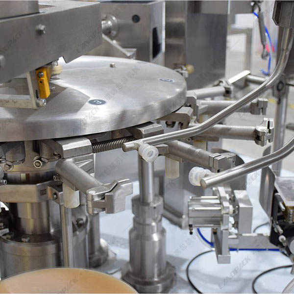 工作流程: 上袋→打印生產(chǎn)日期→開袋→充填1→充填2→空位→熱封→整形及輸出